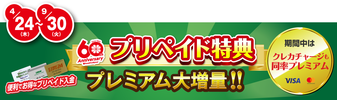 | チャージ金額 | 3,000円 | 5,000円 | 10,000円 | 20,000円 |